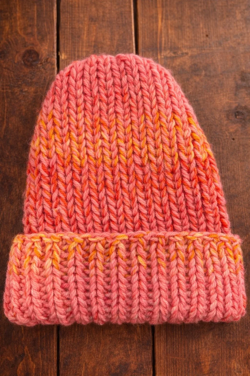 Because every piece is made in small batches, each Coral Sunset Beanie carries its own unique character and slight variation in color placement.
